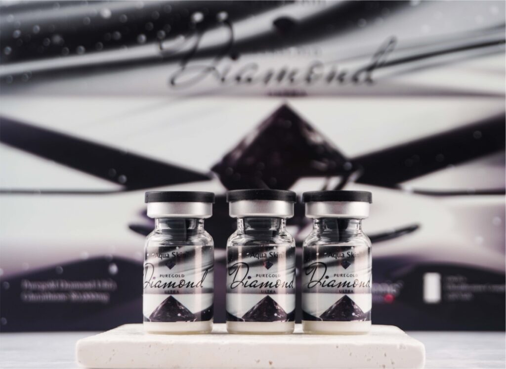 Aquaskin Diamond Ultra is our flagship skin whitening solution, meticulously designed for individuals seeking a safe and effective way to brighten and even out their skin tone.